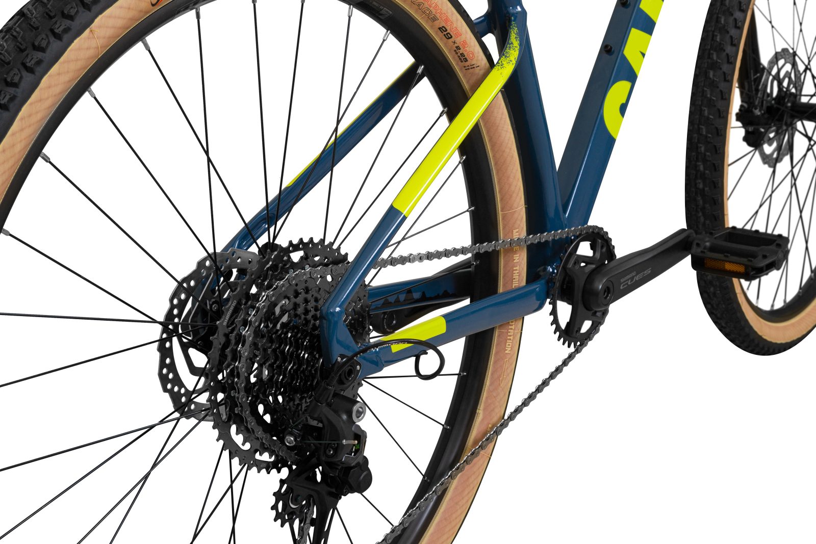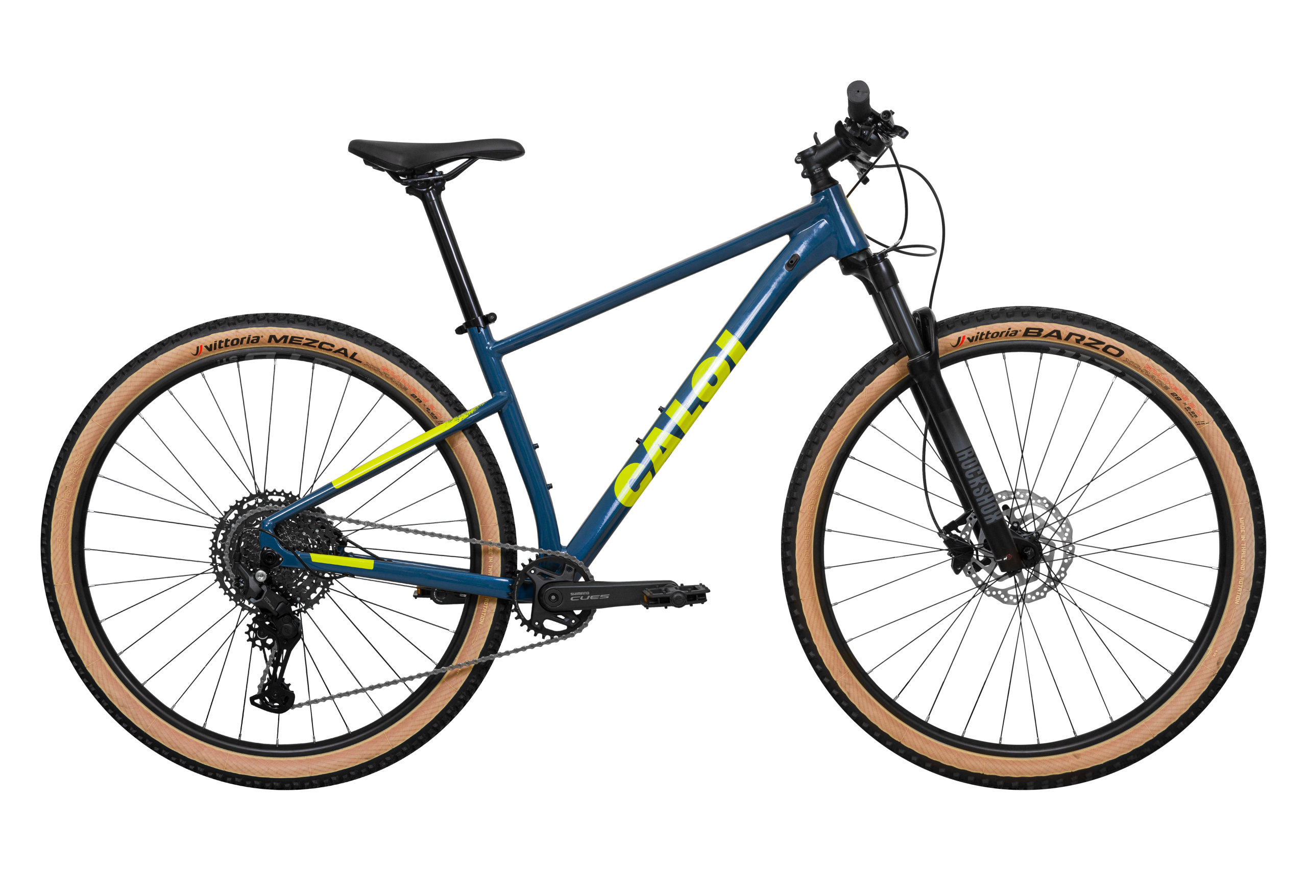 A bike vem equipada com componentes Shimano, com grupo Cues de 11 velocidades, tecnologia LinkGlide no cassete e corrente, cubos Shimano e freios Shimano MT200 160mm/180mm, além de garfo RockShox Judy Silver, pneus dobráveis Vittoria Barzo/Mezcal 29×2.25 e aros WTB, ambos ready for tubeless.